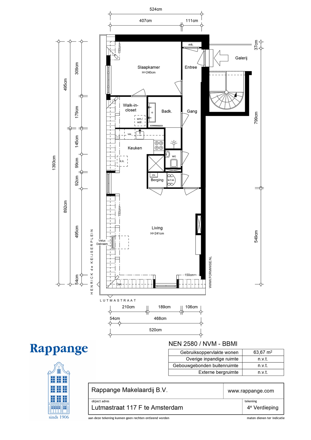 - Woonoppervlakte van 63,67 m2 (conform NEN-2580);